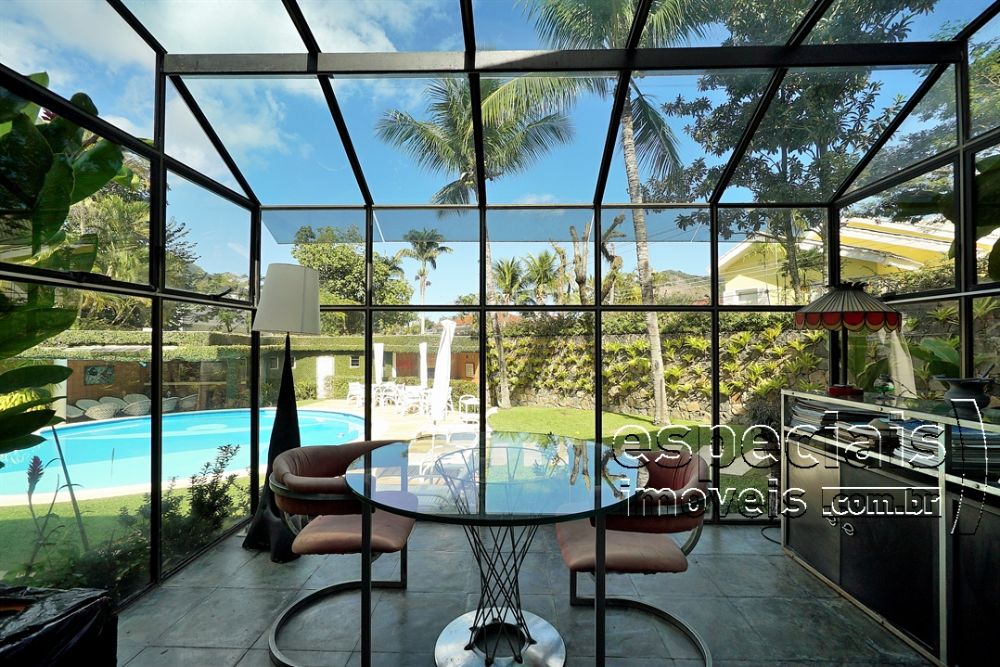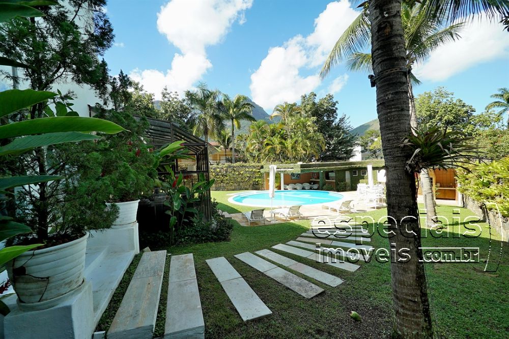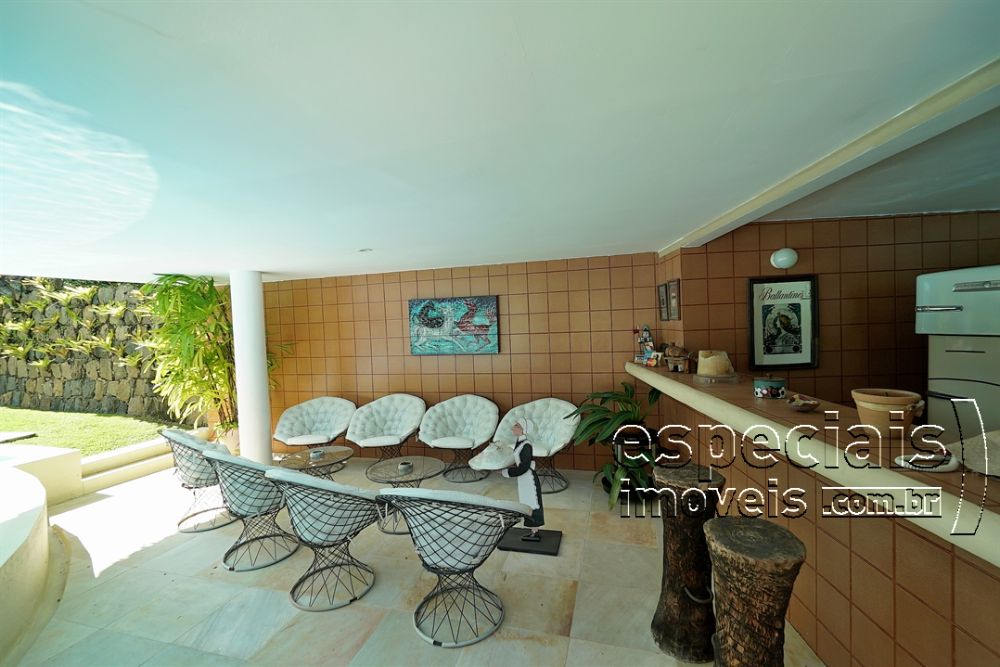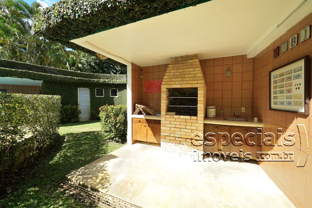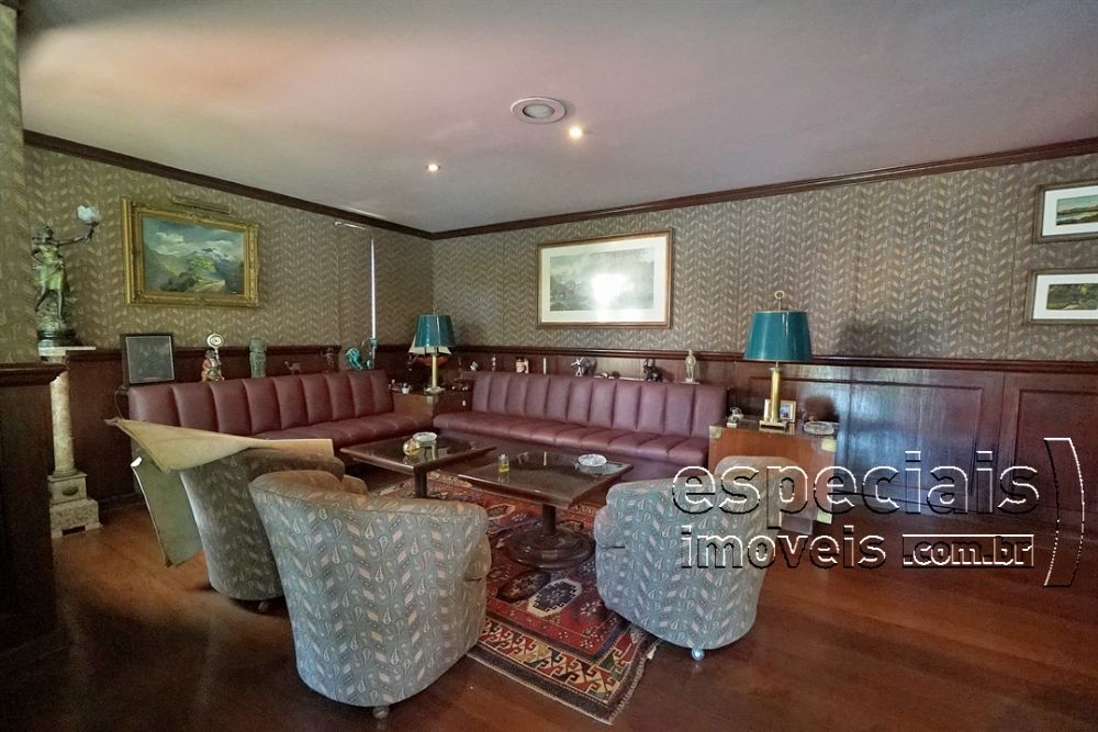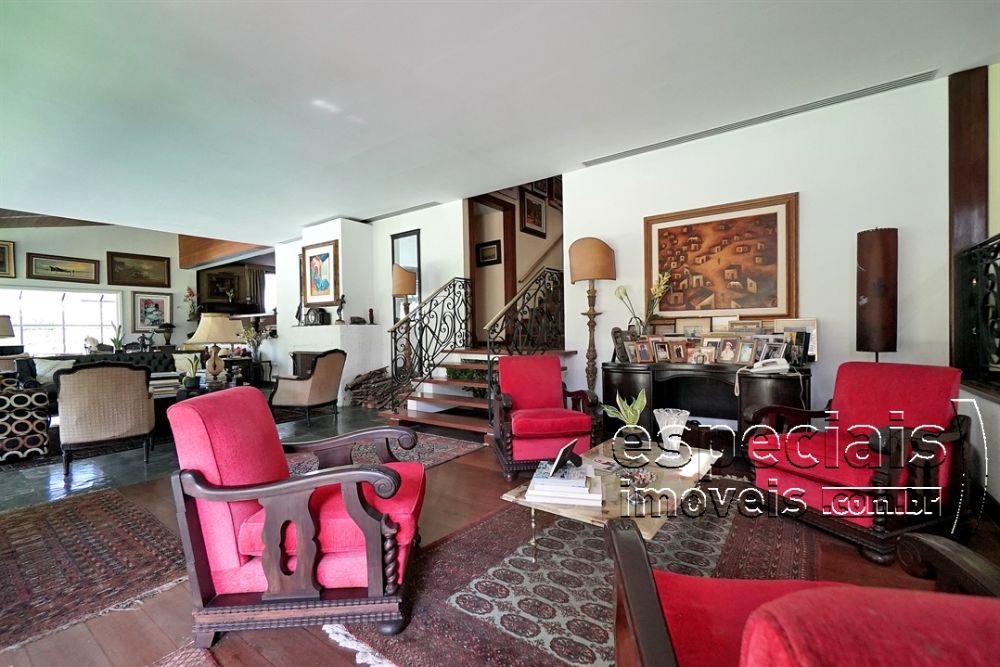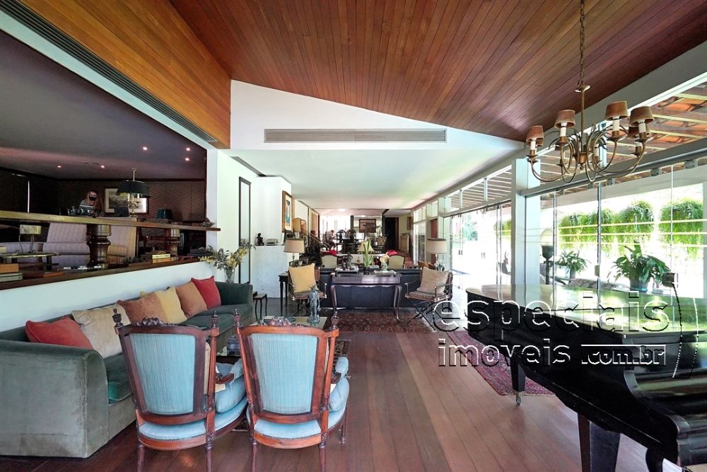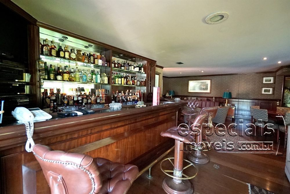 Primeiro pavimento - Área externa: Jardim. Piscina. Sauna. Banheiro de apoio. Espaço gourmet com churrasqueira e academia. Área interna: Salão multiambiente. Sala de jantar com clarabóia. Lavabo. Home theater. Bar inglês. Varanda. Copa, cozinha, despensa, área de serviços/lavanderia, quarto e banheiro de funcionários.