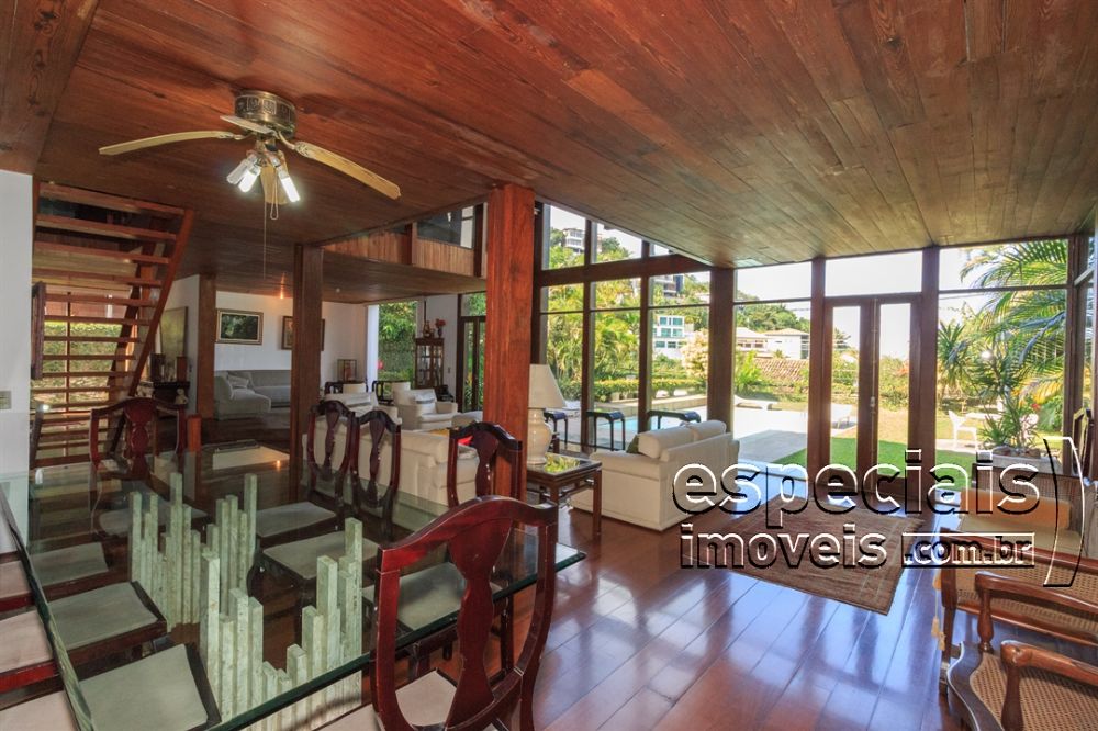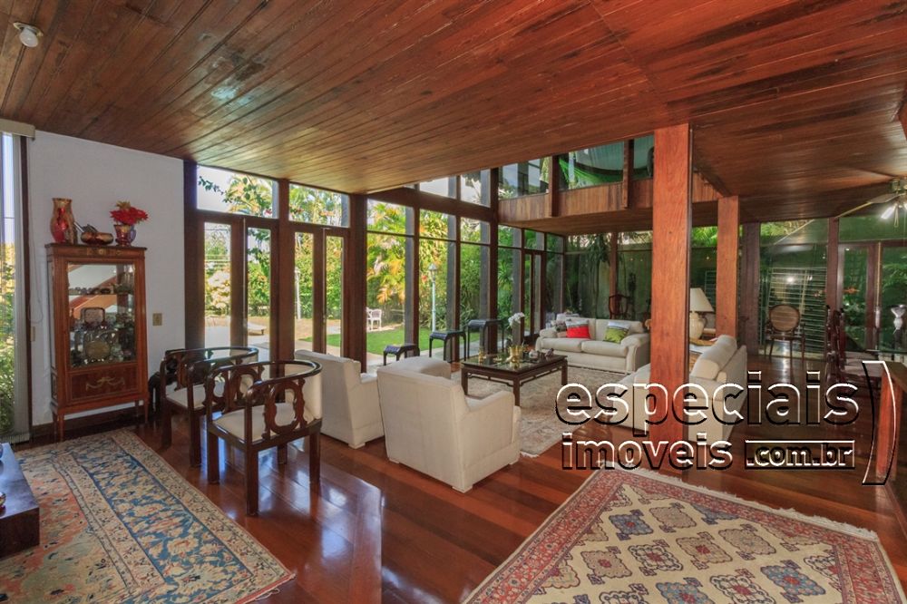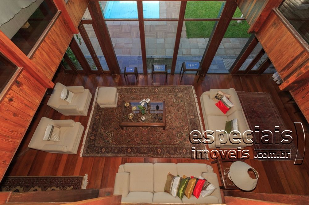 Composta de: Jardins, paisagismo, piscina, sauna e ducha. Salão multiambiente com pé direito duplo, bar, lavabo e mezanino. 05 quartos (03 suítes com closet). Banheiro social. Copa, cozinha, área de serviços e dependências de funcionários. Garagem para 4 carros. Fotos provisórias gentilmente cedidas pelos proprietários.