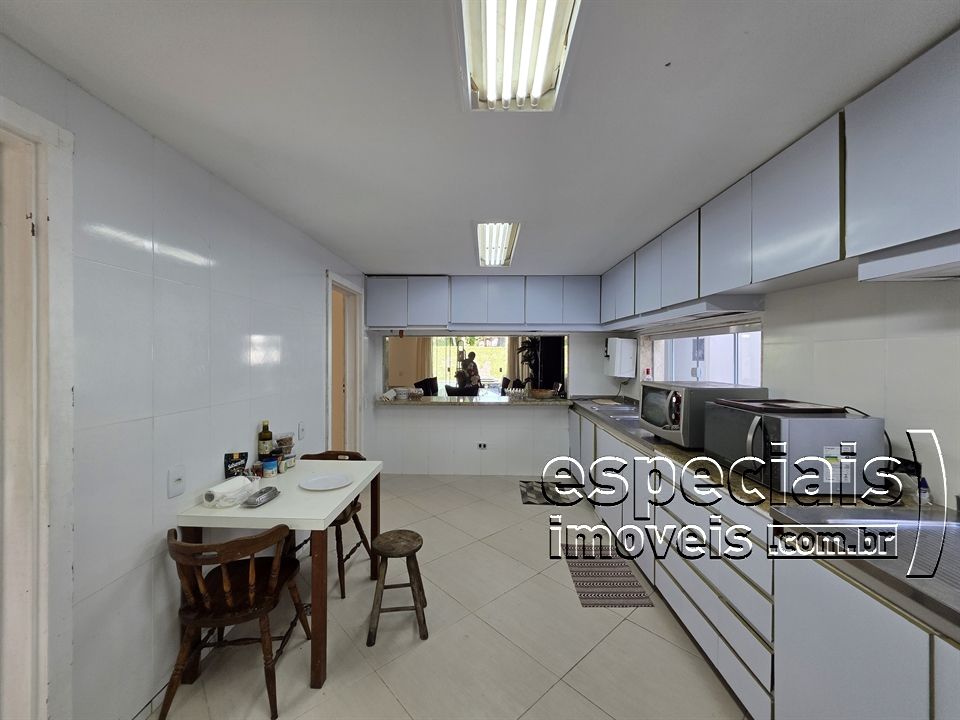Primeiro pavimento - Área externa: Jardins. Piscina. Varanda. Churrasqueira. Sauna. Área interna: Salão multiambiente. Lavabo. 01 Suíte. Cozinha, área de serviços, 2 quartos e banheiro de funcionários.