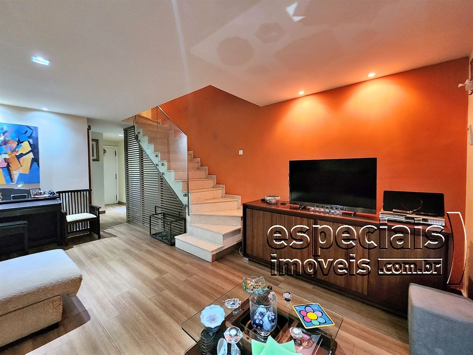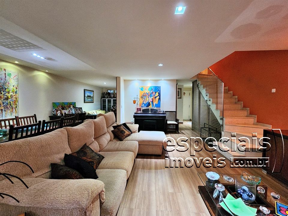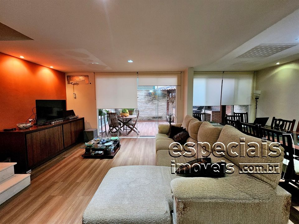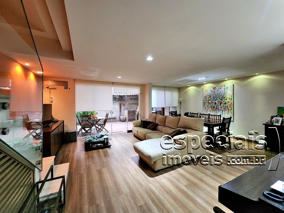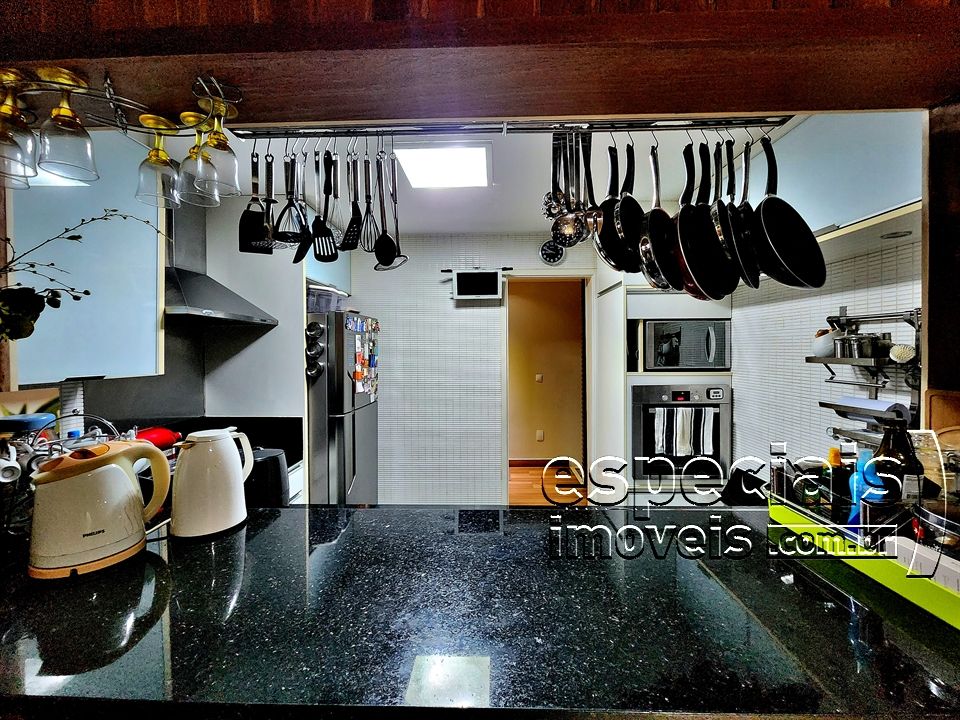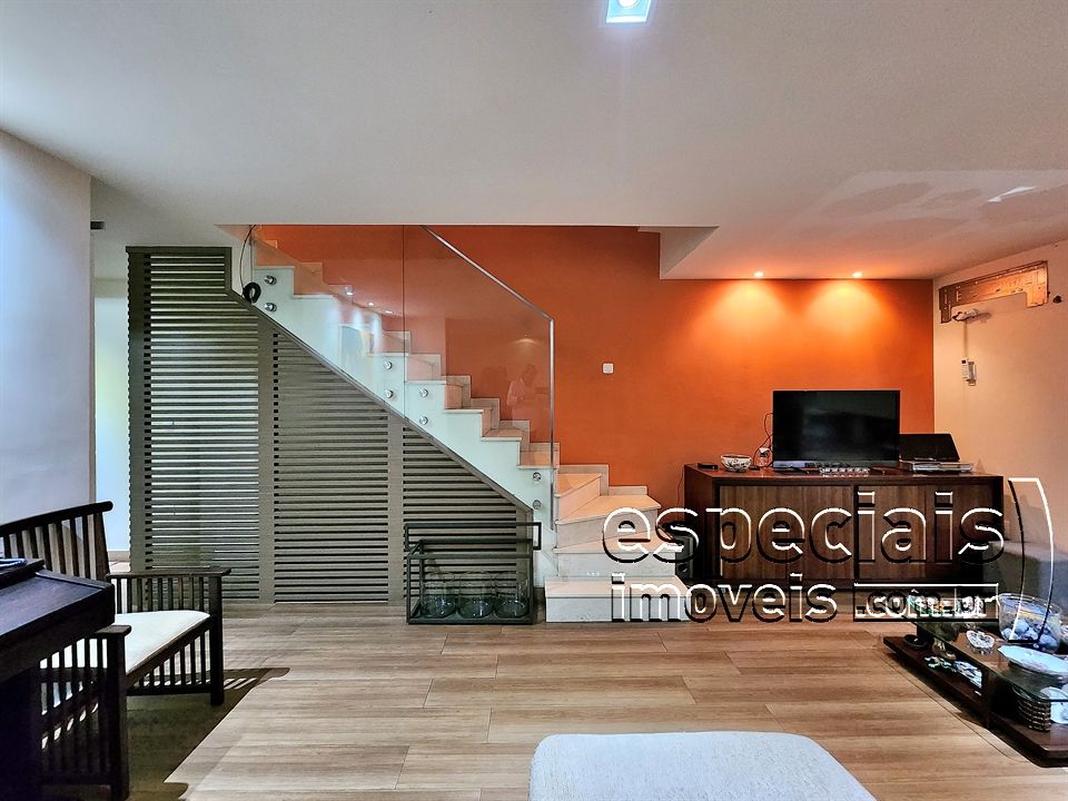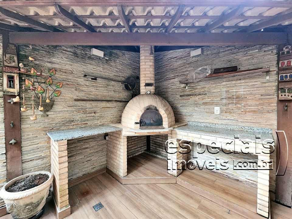 Primeiro pavimento: Salão multiambiente. Lavabo. Cozinha americana. Terraço com área gourmet: forno a lenha e bancada de apoio.