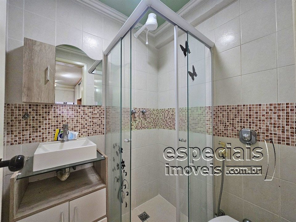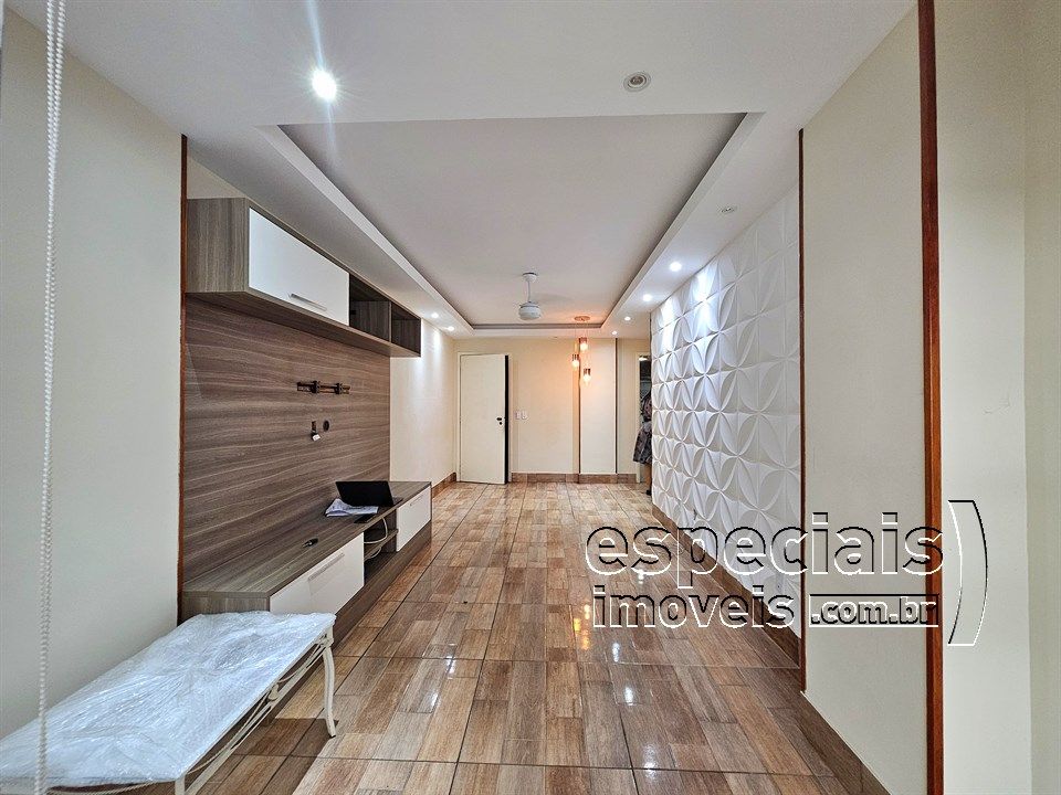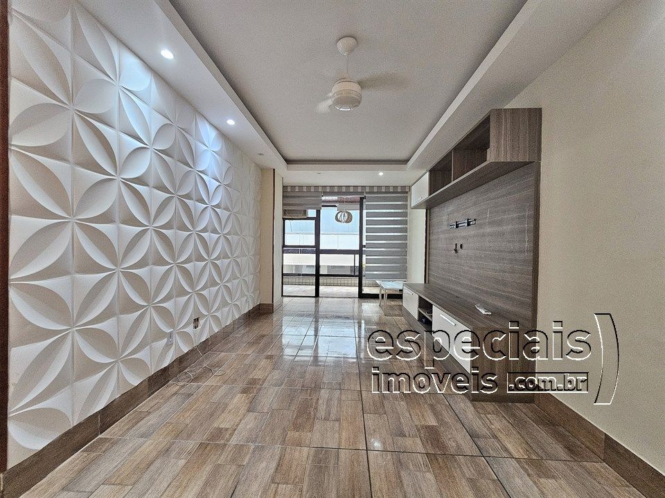 Composto de: Sala multiambiente. Varanda com fechamento em cortina de vidro. 3 Quartos (1 Suíte). Banheiro social. Cozinha e área de serviços.