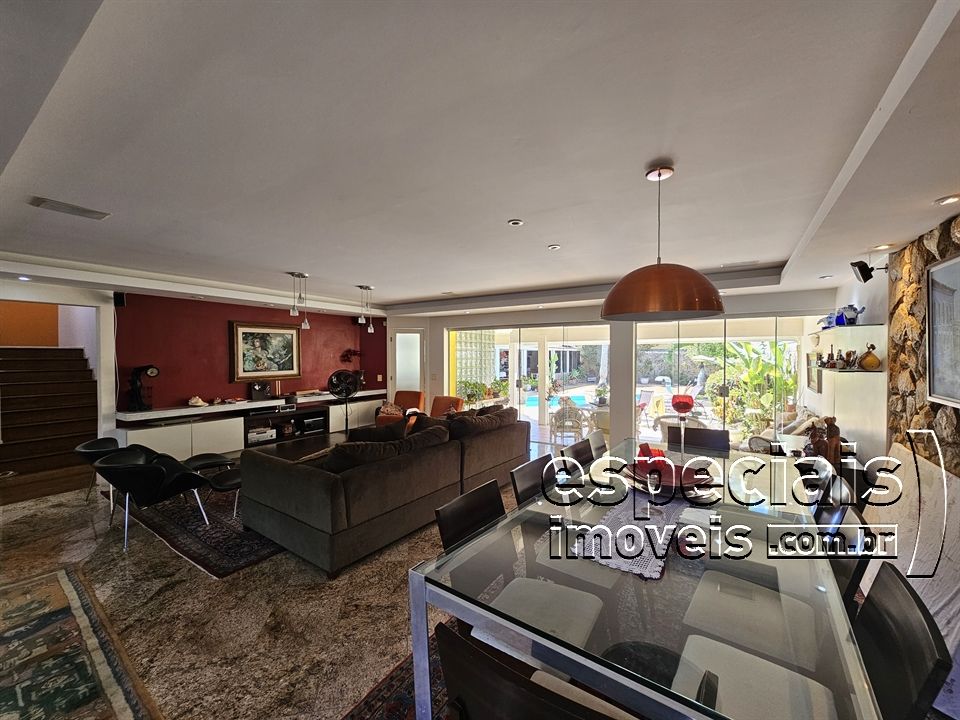 Primeiro pavimento: Hall social. Sala de estar. Sala de jantar. Lavabo. 1 Suíte. Copa. Cozinha. Louceiro. Área de serviço e lavanderia. Área de lazer: piscina, sauna, varanda com área de churrasqueira. Banheiro social.