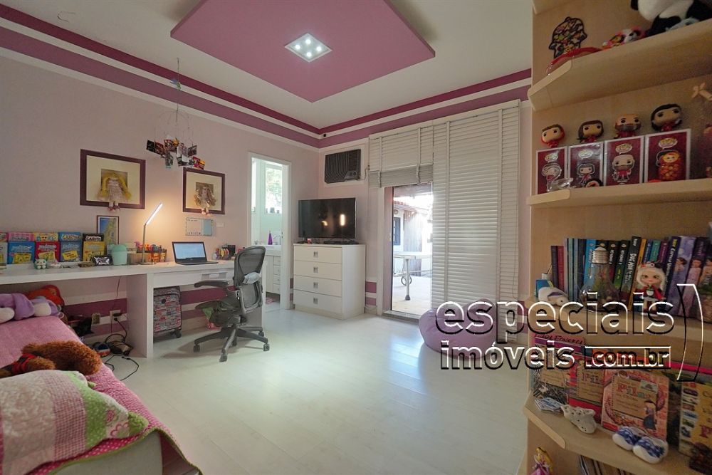 Composta de: Hall social. Salão multiambiente. Sala de TV. 3 Suítes. Banheiro social. Roupeiro. Copa, cozinha, área de serviços, lavanderia, 2 quartos e banheiro de funcionários. Área externa: amplo quintal gramado com jardim e árvores, deck, piscina, ducha. Varanda, área gourmet com churrasqueira, forno de pizza e bancada completa. Banheiro de apoio. Escritório.