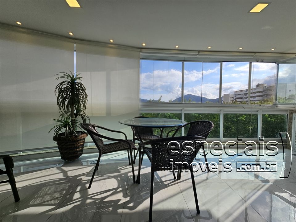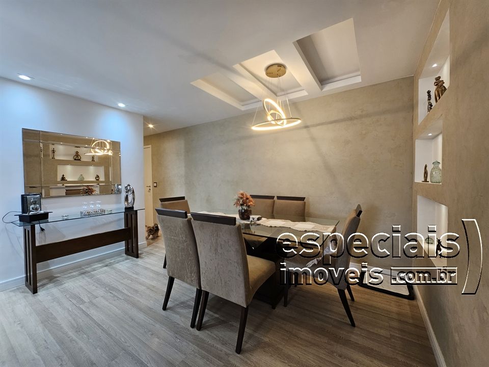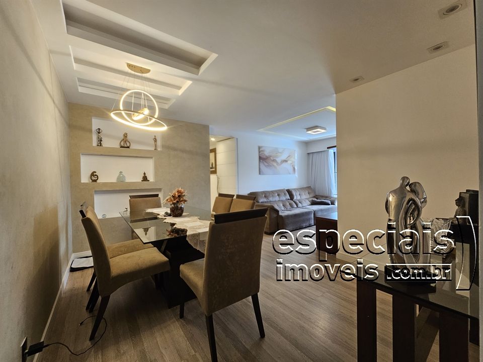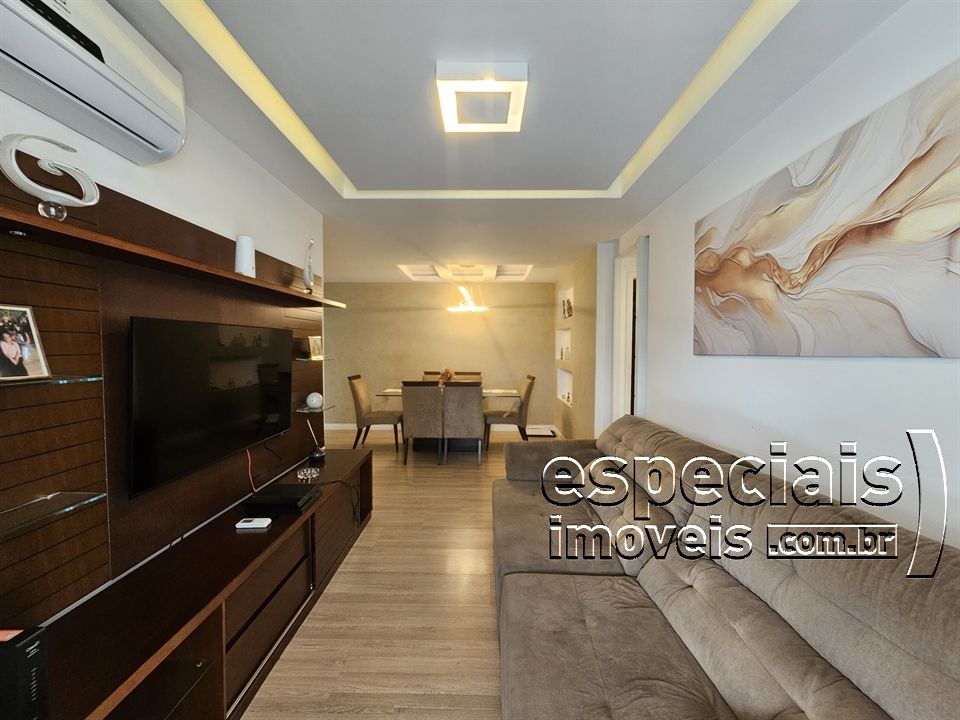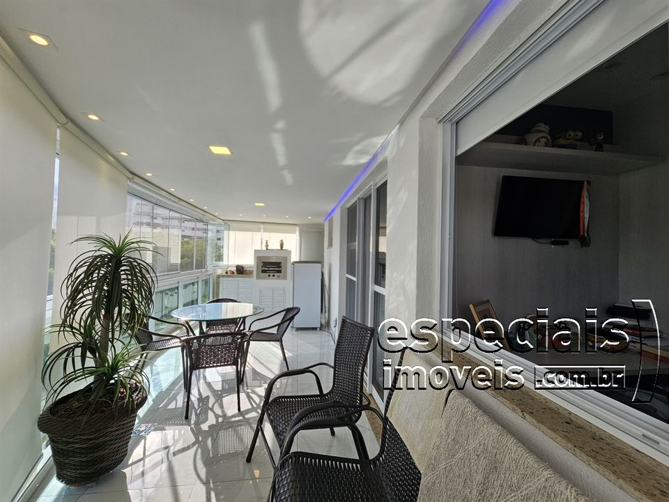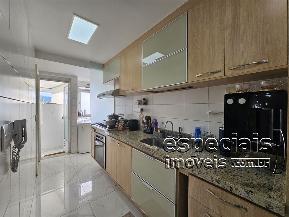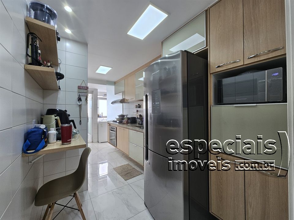 Composto de: Hall social. Salão multiambiente. Varanda com fechamento em cortina de vidro. 3 Quartos (1 Suíte). Banheiro social. Cozinha. Área de serviços. Dependência completa de funcionários.