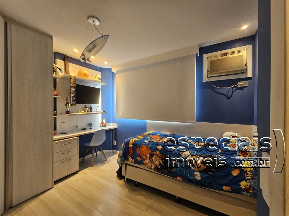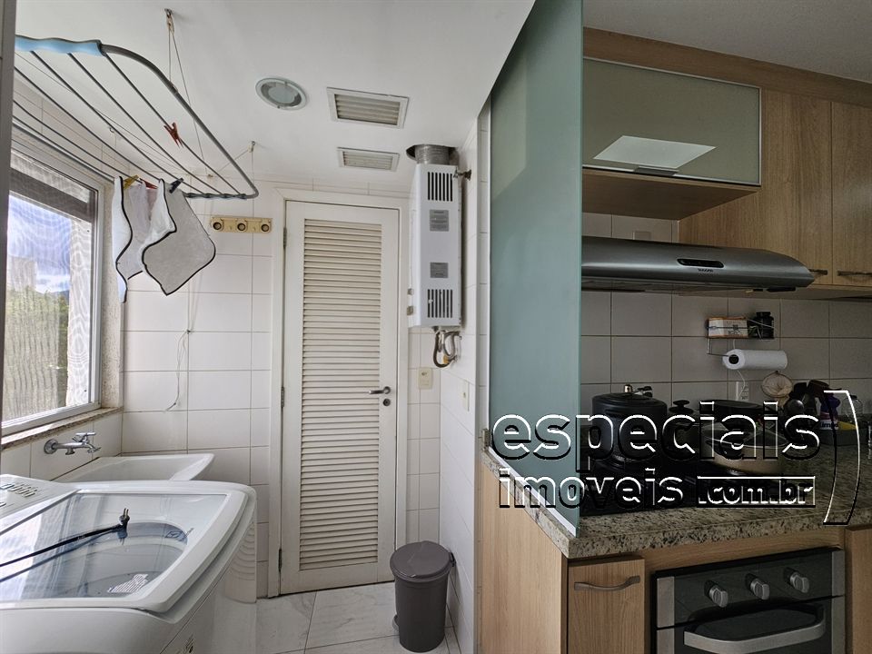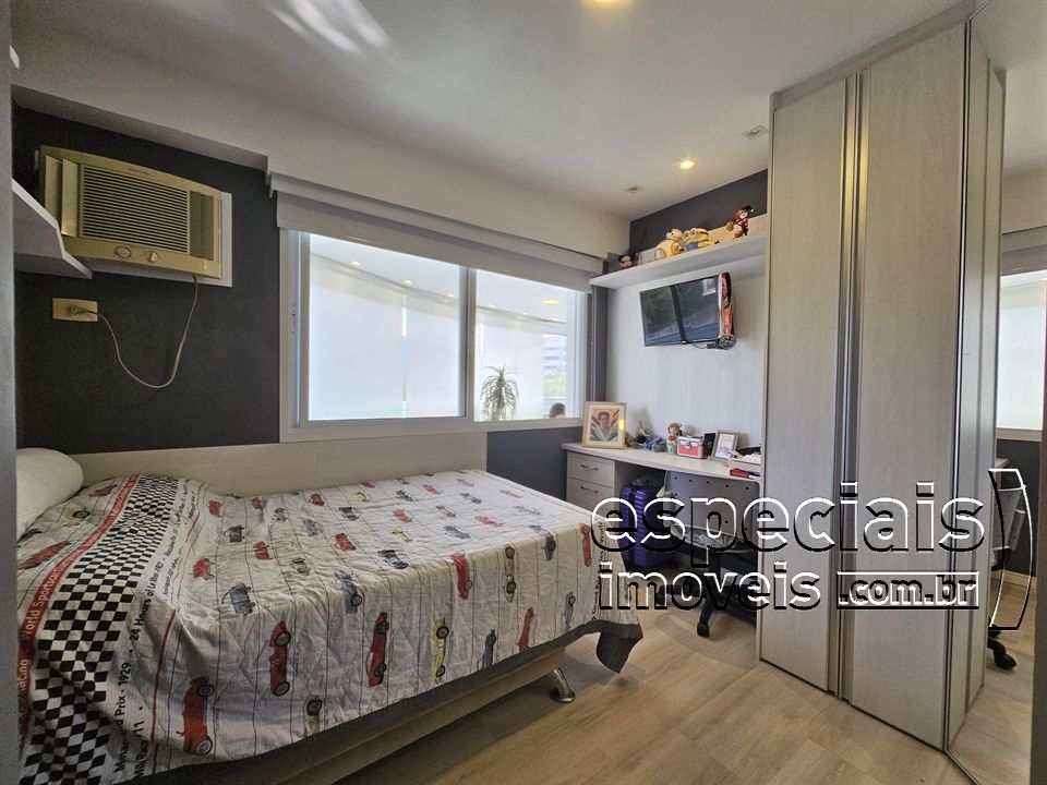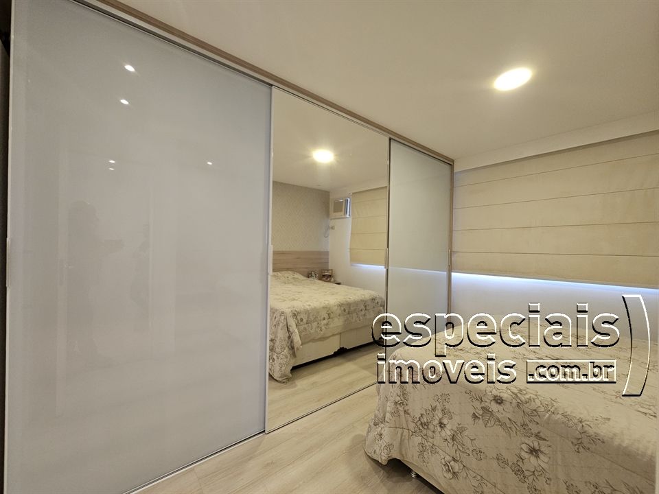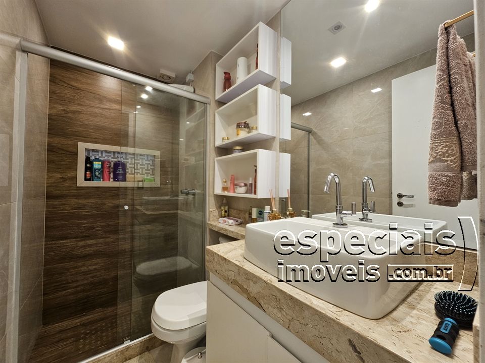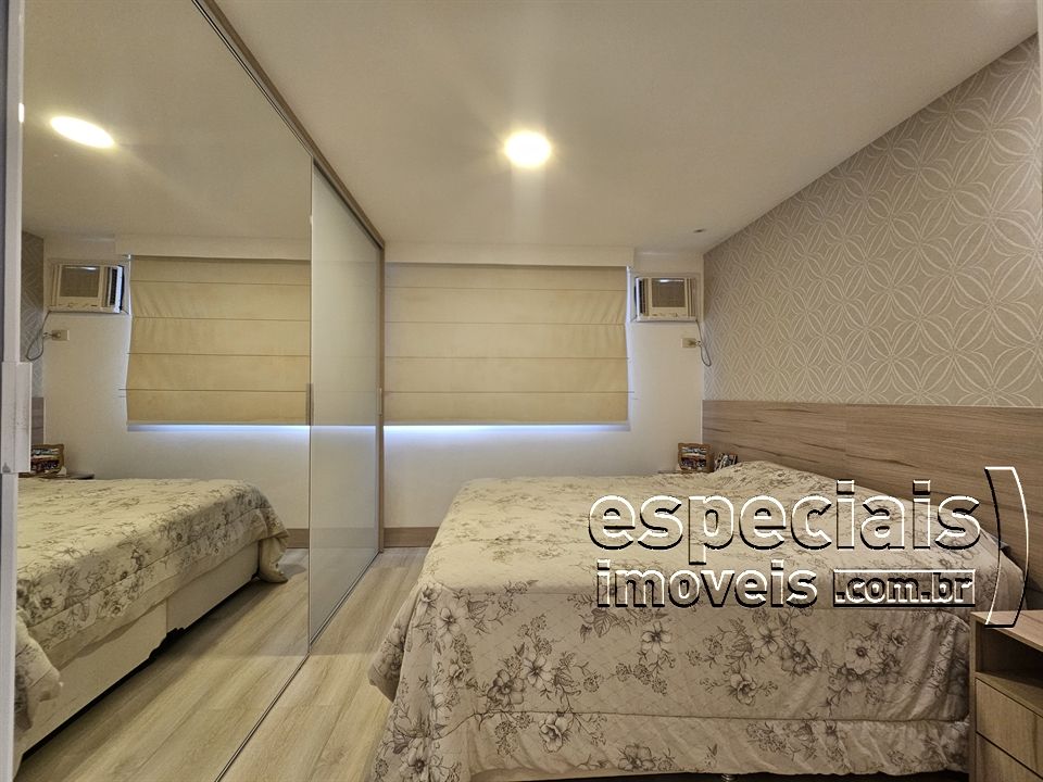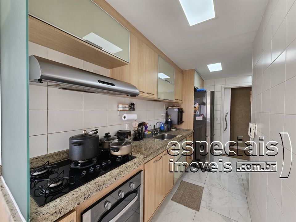 Composto de: Hall social. Salão multiambiente. Varanda com fechamento em cortina de vidro. 3 Quartos (1 Suíte). Banheiro social. Cozinha. Área de serviços. Dependência completa de funcionários.