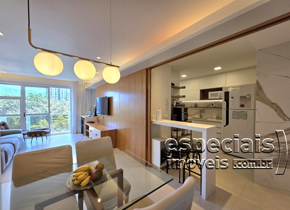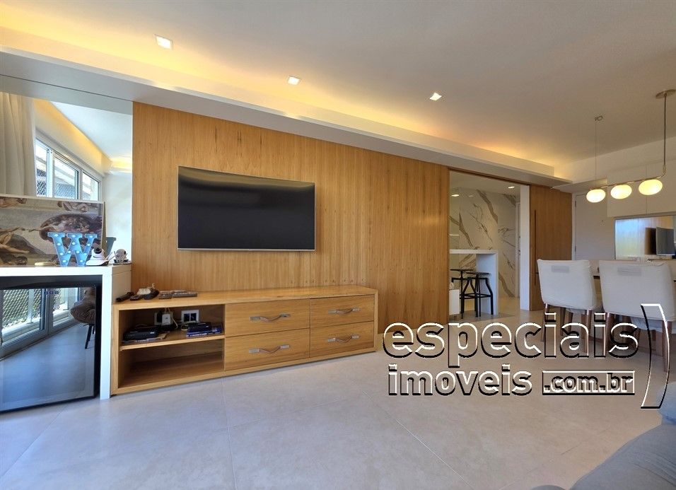 Composto de: Sala multiambiente (estar e jantar). Sacada frontal. 3 quartos (1 suíte). Banheiro social. Copa, cozinha, despensa, área e banheiro de serviço.