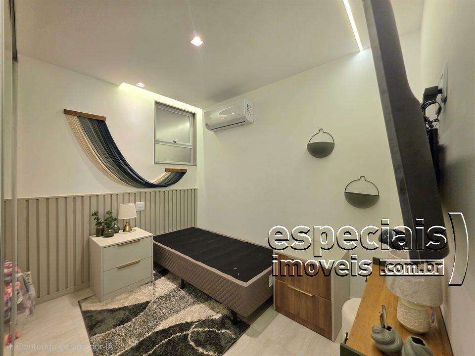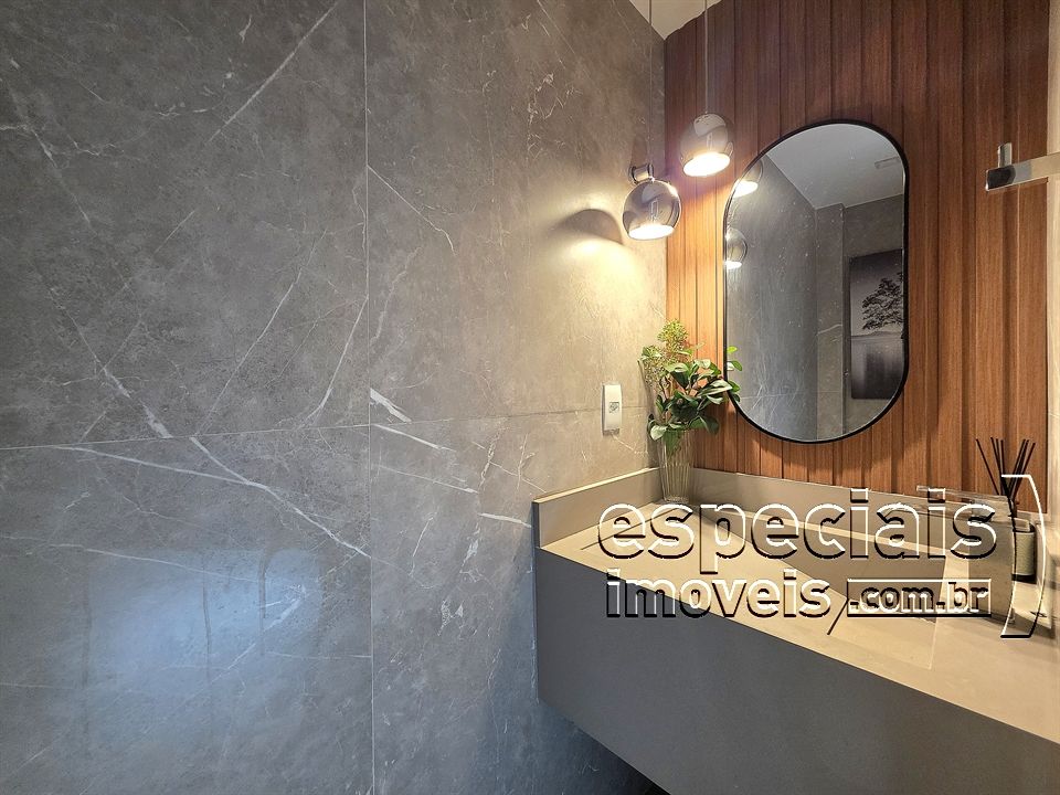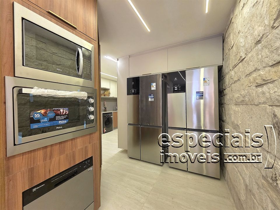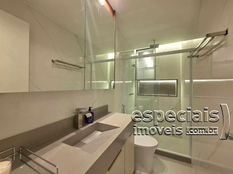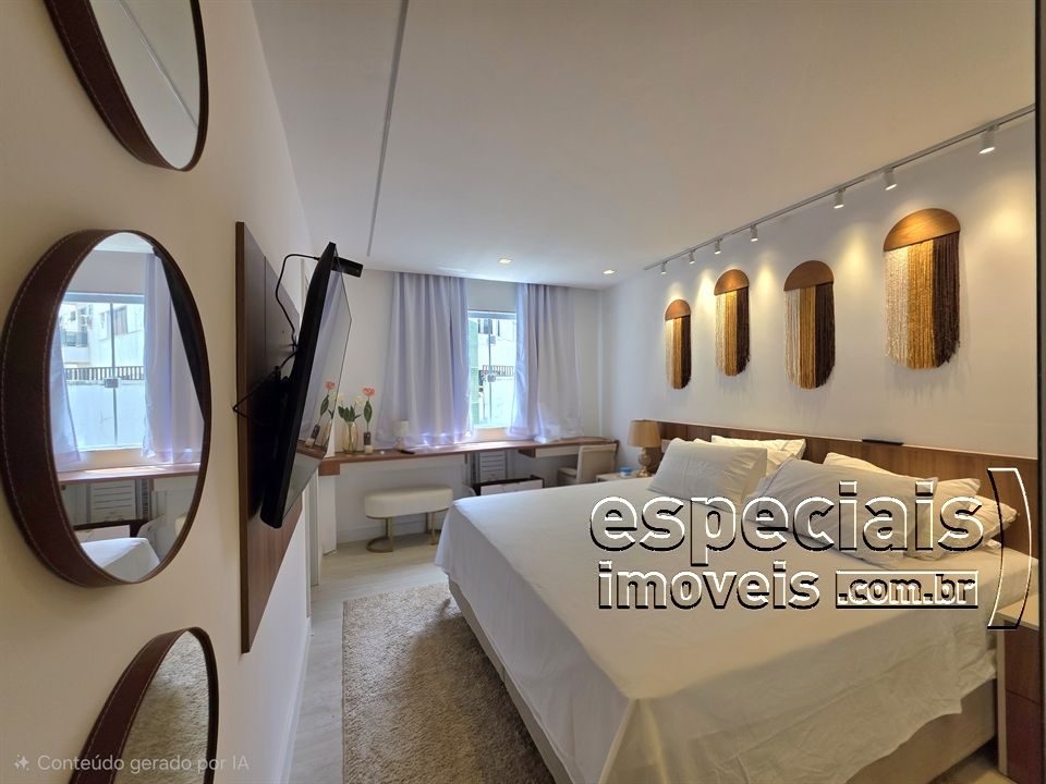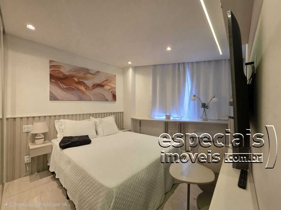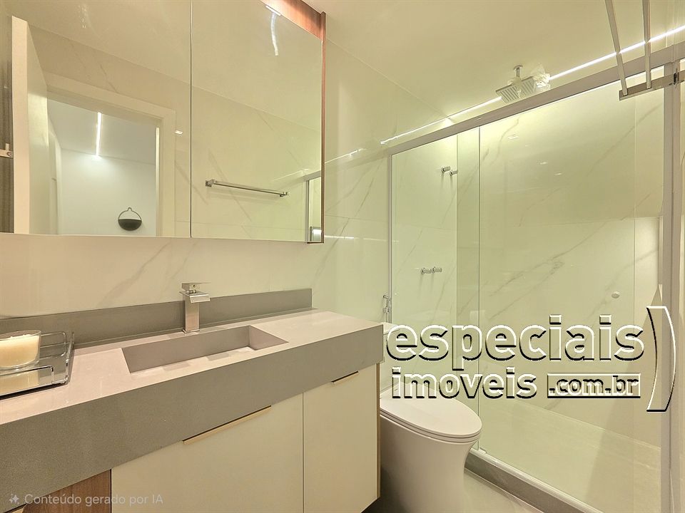 Composto de: Hall social. Salão multiambiente (estar e jantar). Varanda com fechamento em cortina de vidro. Lavabo. Roupeiro. 4 Suítes. Copa e cozinha integradas à sala. Área de serviços, quarto e banheiro de funcionários.