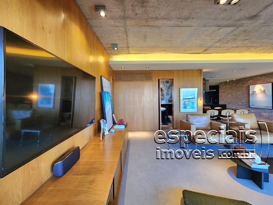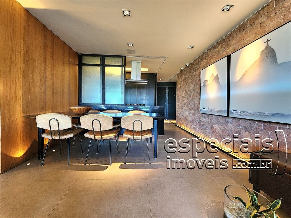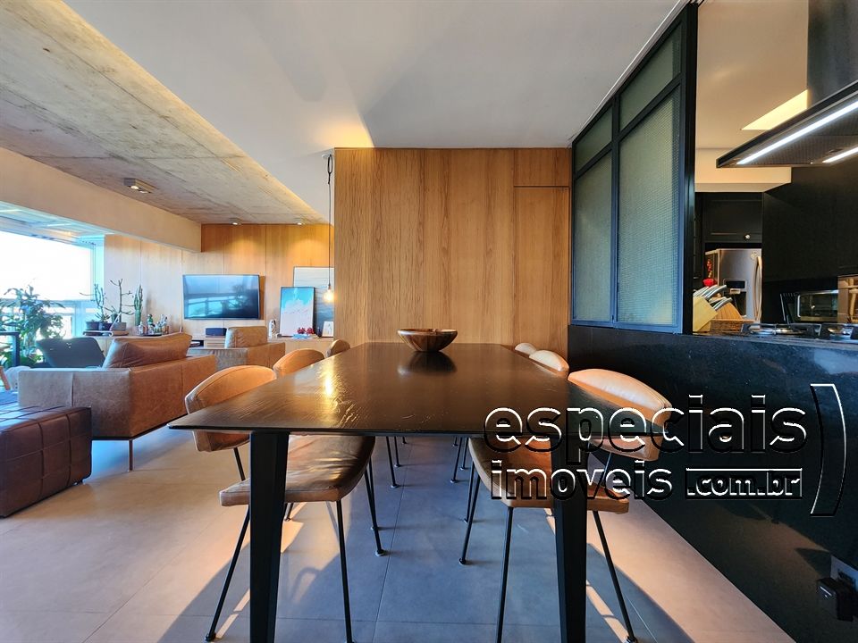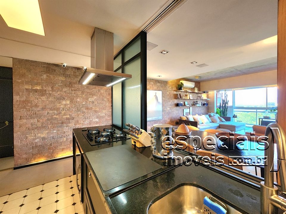 Composto de: Salão multiambiente com varanda integrada (fechamento em cortina de vidro). Lavabo. 2 Suítes (master com closet). Cozinha com opção aberta/fechada. Área de serviços e lavanderia. Despensa. Quarto de funcionários. Área técnica.