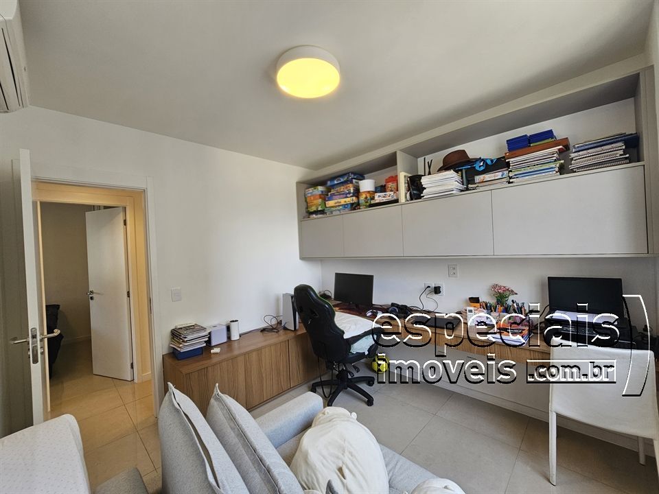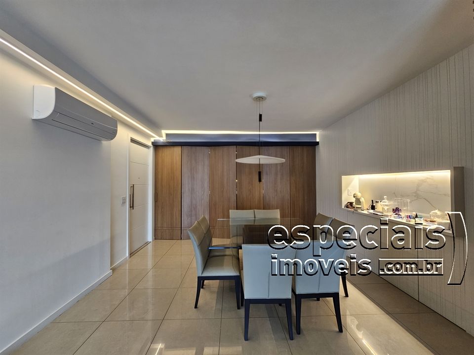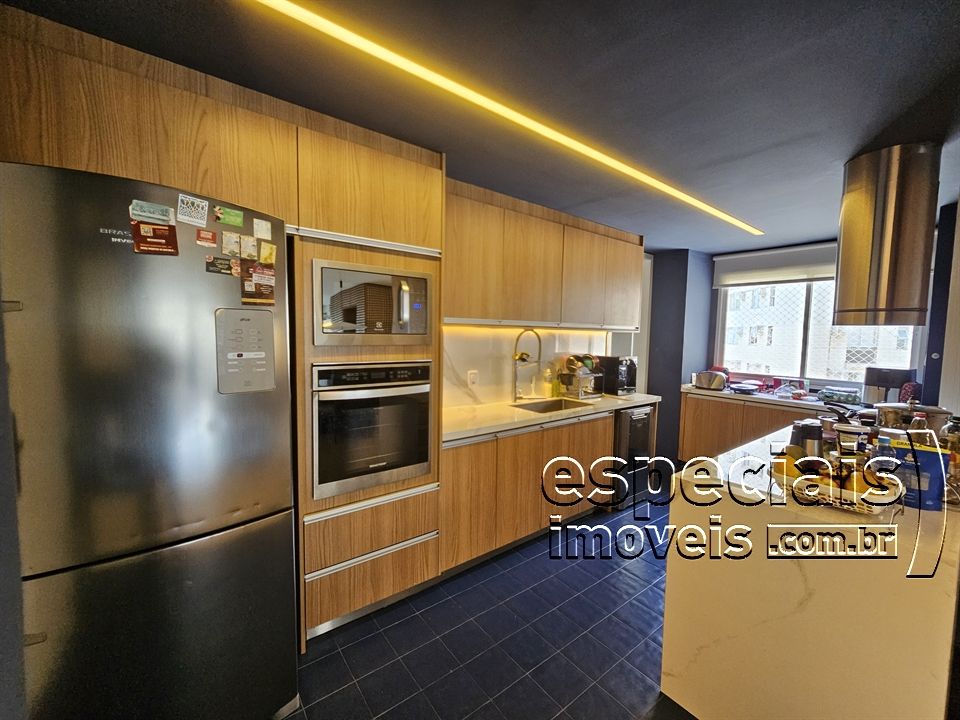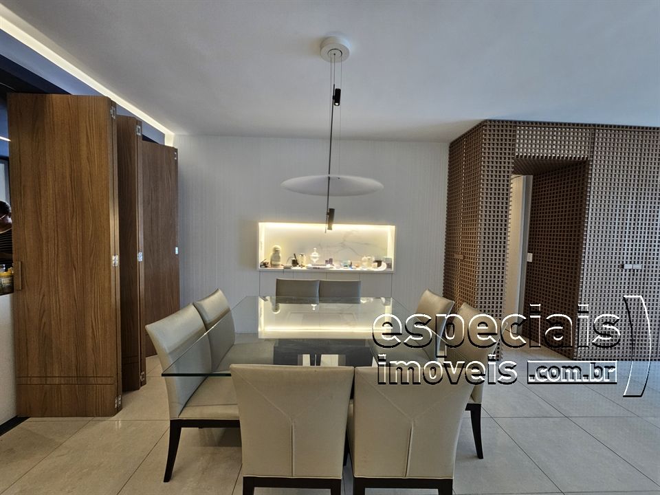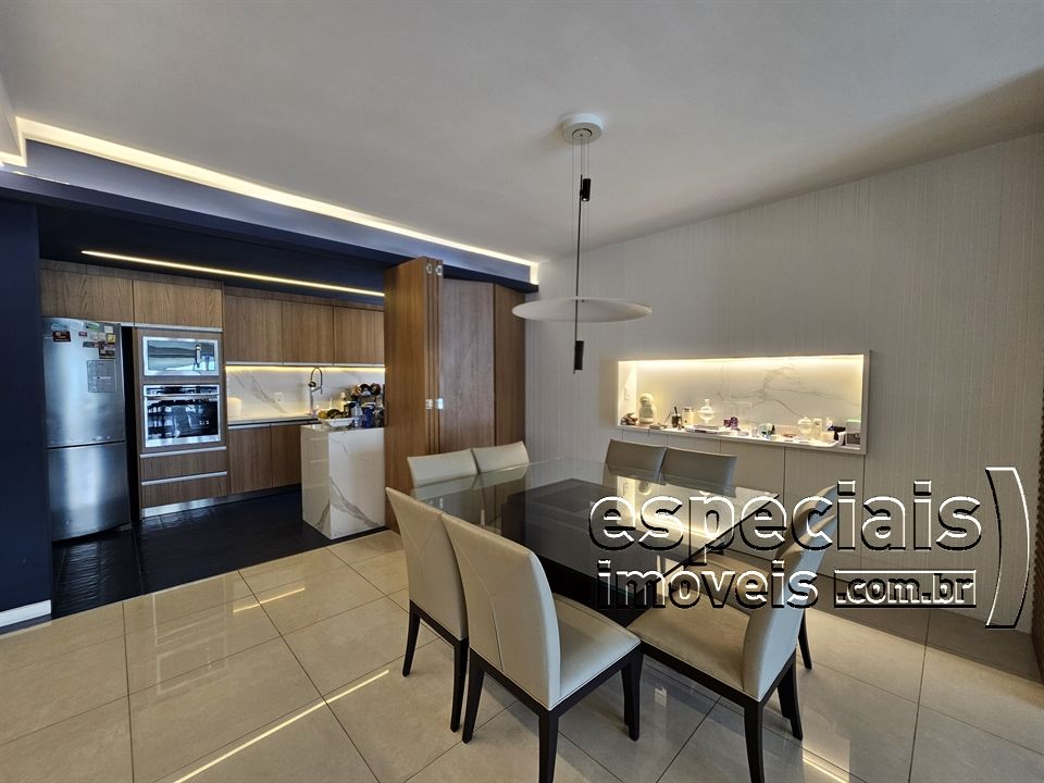 Composto de: Salão multiambiente com cozinha gourmet integrada. Varanda com churrasqueira e bancada de apoio (fechamento em cortina de vidro). Lavabo. 4 Suites (duas canadenses). Área de serviços e dependência completa de funcionários.