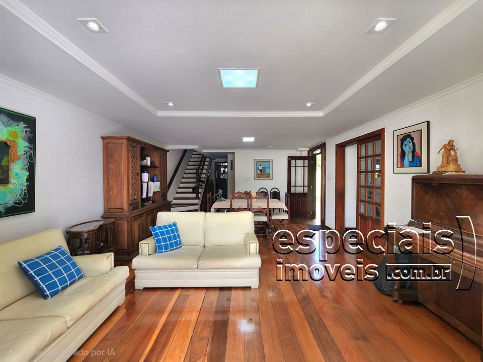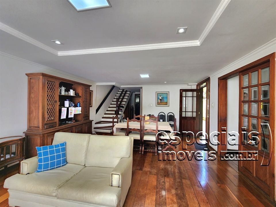 Primeiro pavimento: Hall social. Salão multiambiente. Escritório. Varanda. Terraço com ducha e piscina. Área de churrasqueira coberta. 1 Quarto. Banheiro social. Copa, cozinha, lavanderia, área de serviços e dependência de funcionários.